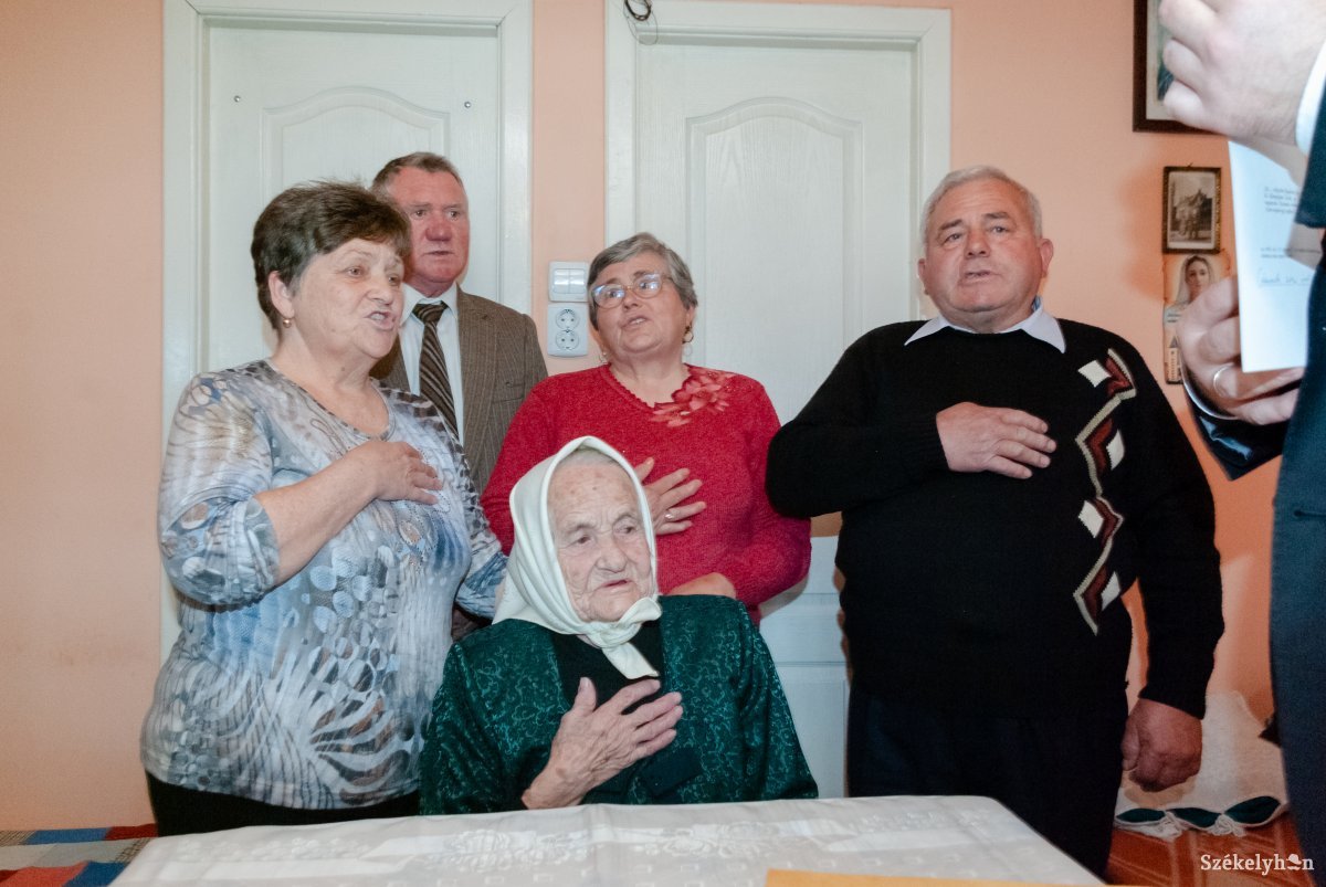 This week Margit Geréd, became Hungarian citizen for the third time in her long life when she received dual citizenship on her 100th birthday on Tuesday. Mayor of Csíkszépvíz/Frumoasa Tibor Ferencz, and Consul General of Csíkszereda/Miercurea Ciuc László Tóth greeted her in Csíkborzsova/Bârzava in her home. “Aunt Marcsa” – as everybody calls her in the village – gave birth to seven children, and has now fifteen grandchildren and sixteen great-grandchildren which means that a gathering of her immediate family consists of more than sixty people. The next occasion like that will be on Saturday, when the family will celebrate together her 100th Birthday.