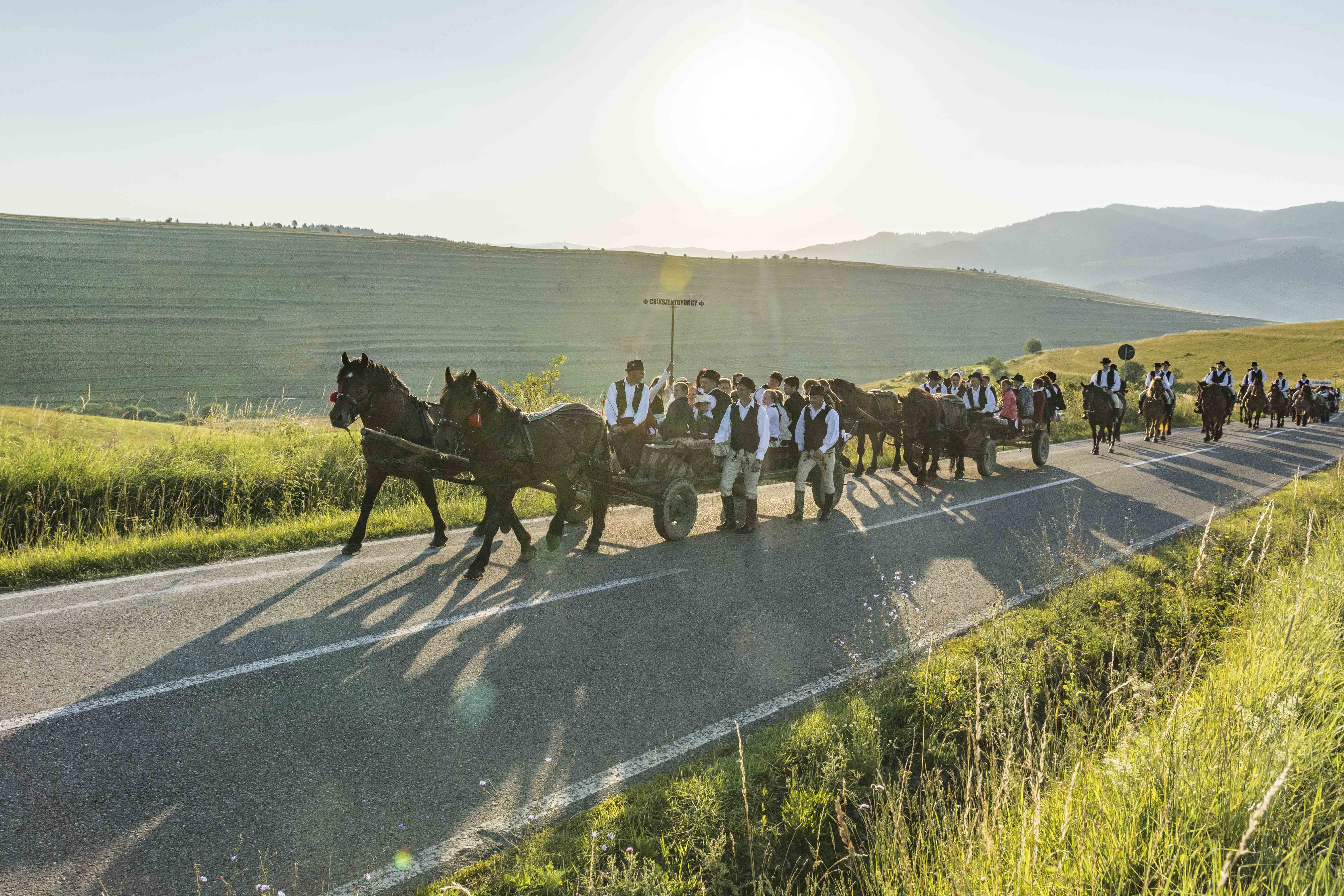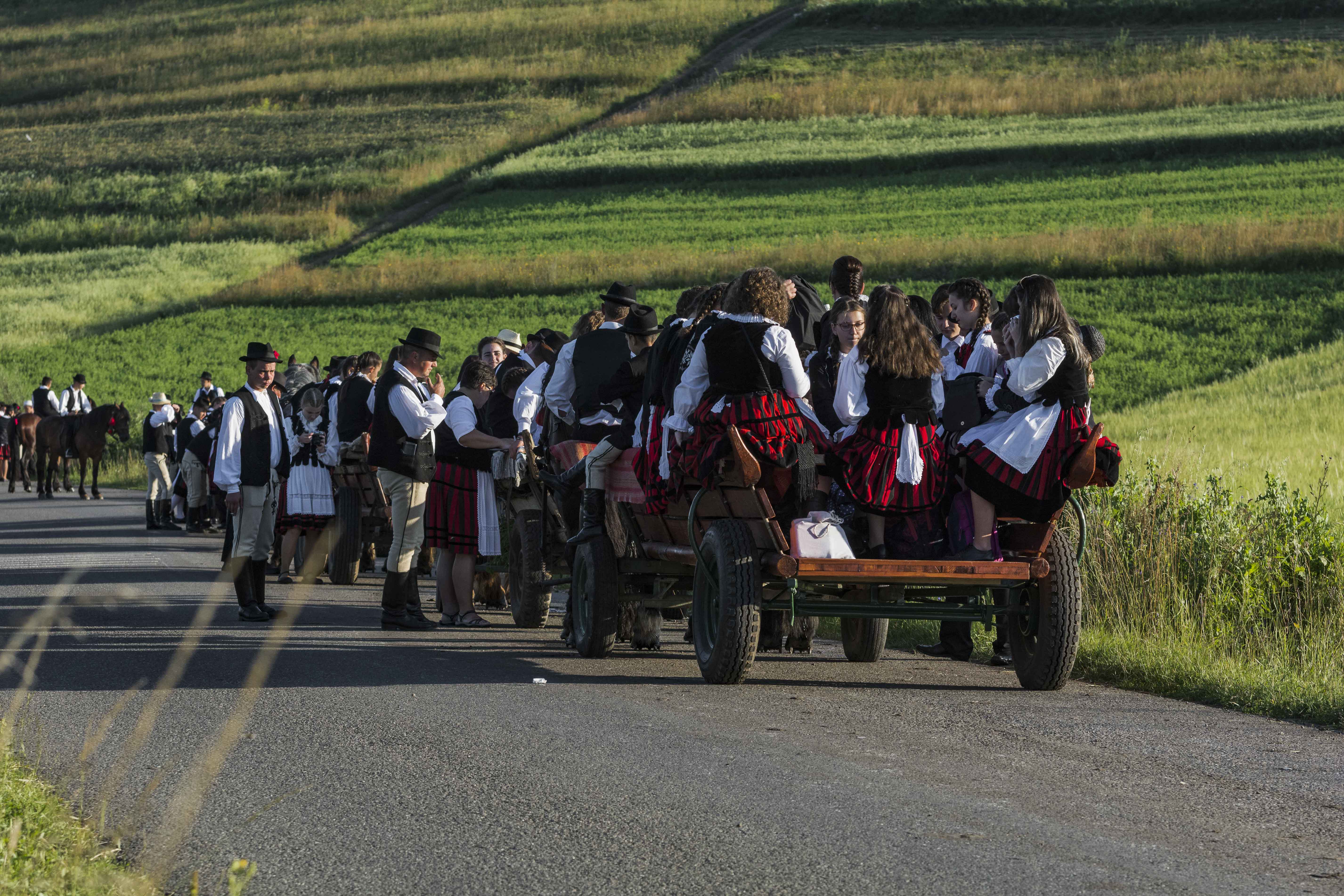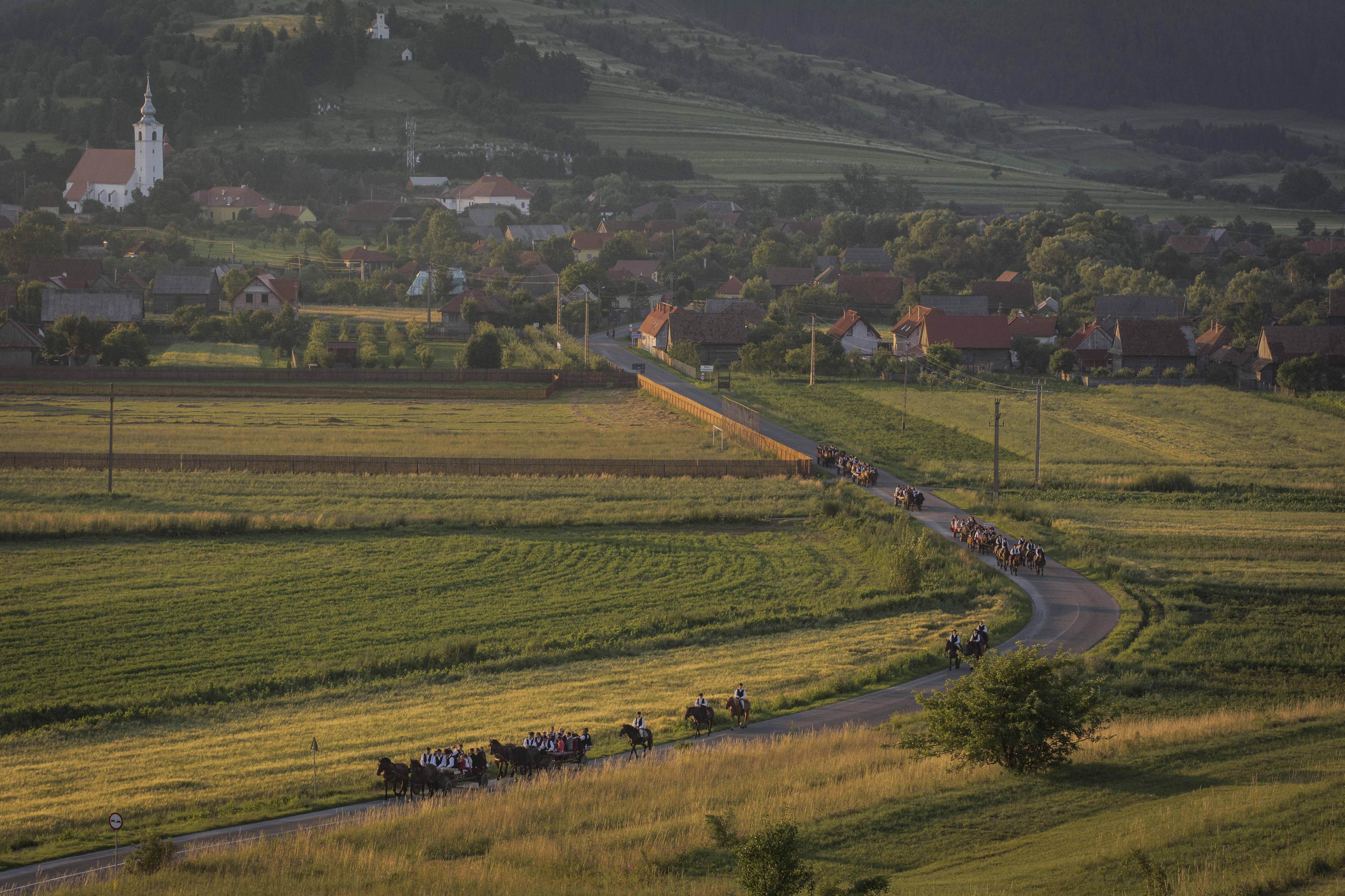 Saturday at dawn a group of youngsters dressed in traditional Székely folk costumes left from Pottyond/Potiond on farm wagons and horseback to start their 25 km long journey to the Day of the Thousand Székely Girls event in Csíkszereda/Miercurea Ciuc. We followed the caravan to show you their journey in pictures and also talked with the leader of the group, Lajos Magyar about the importance of traditions, and about his motivations.