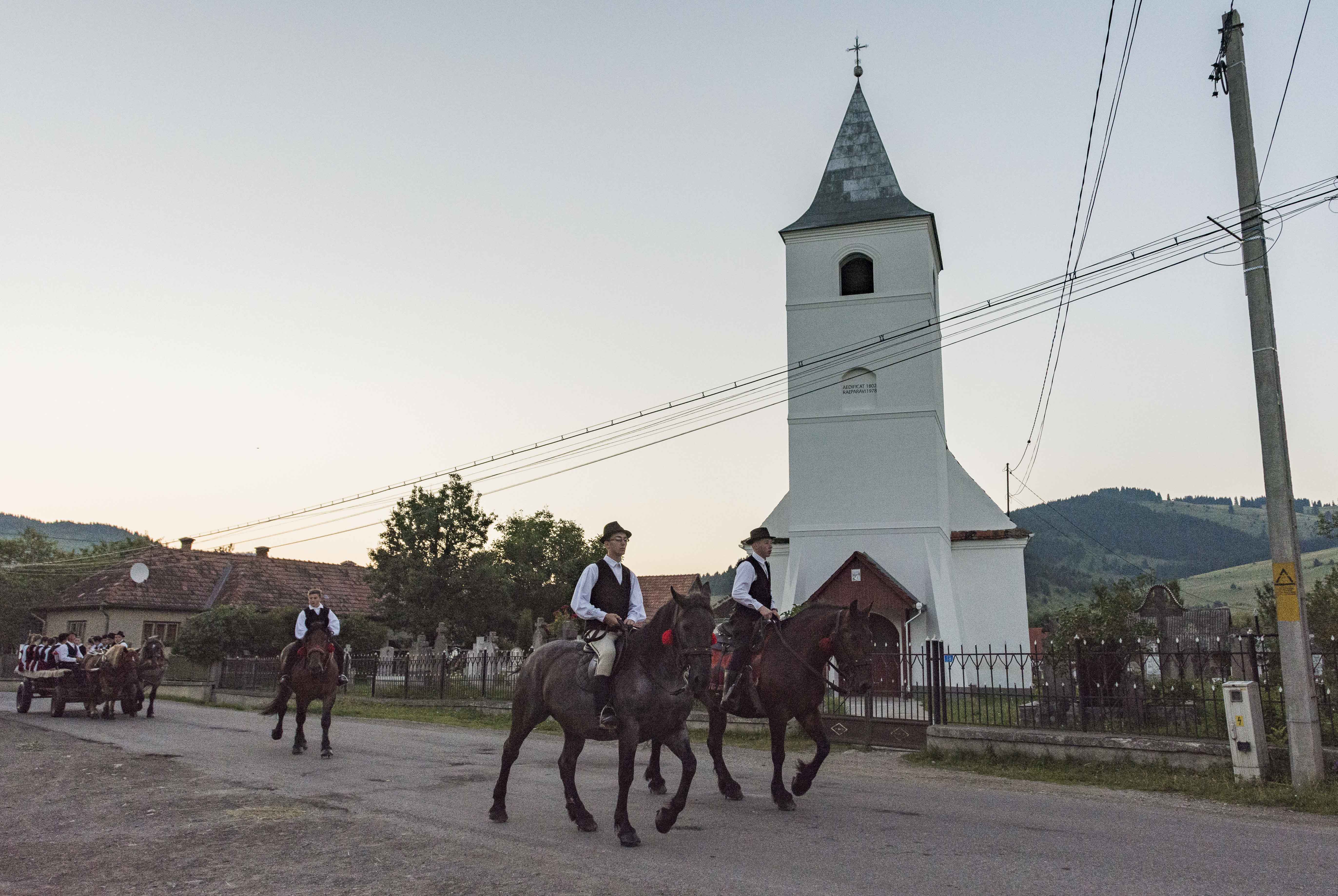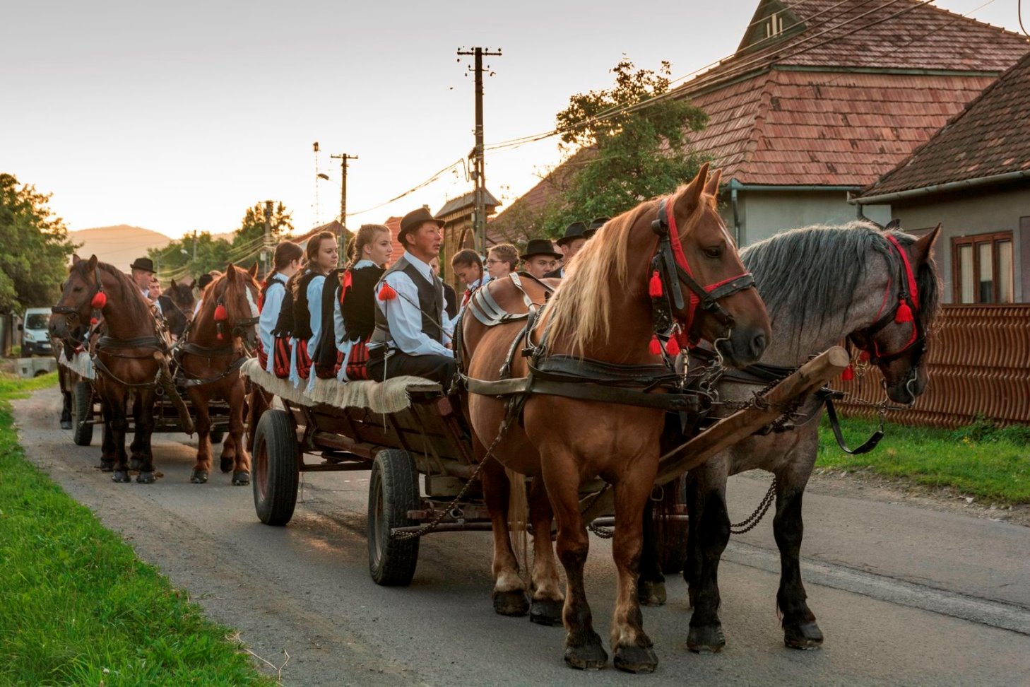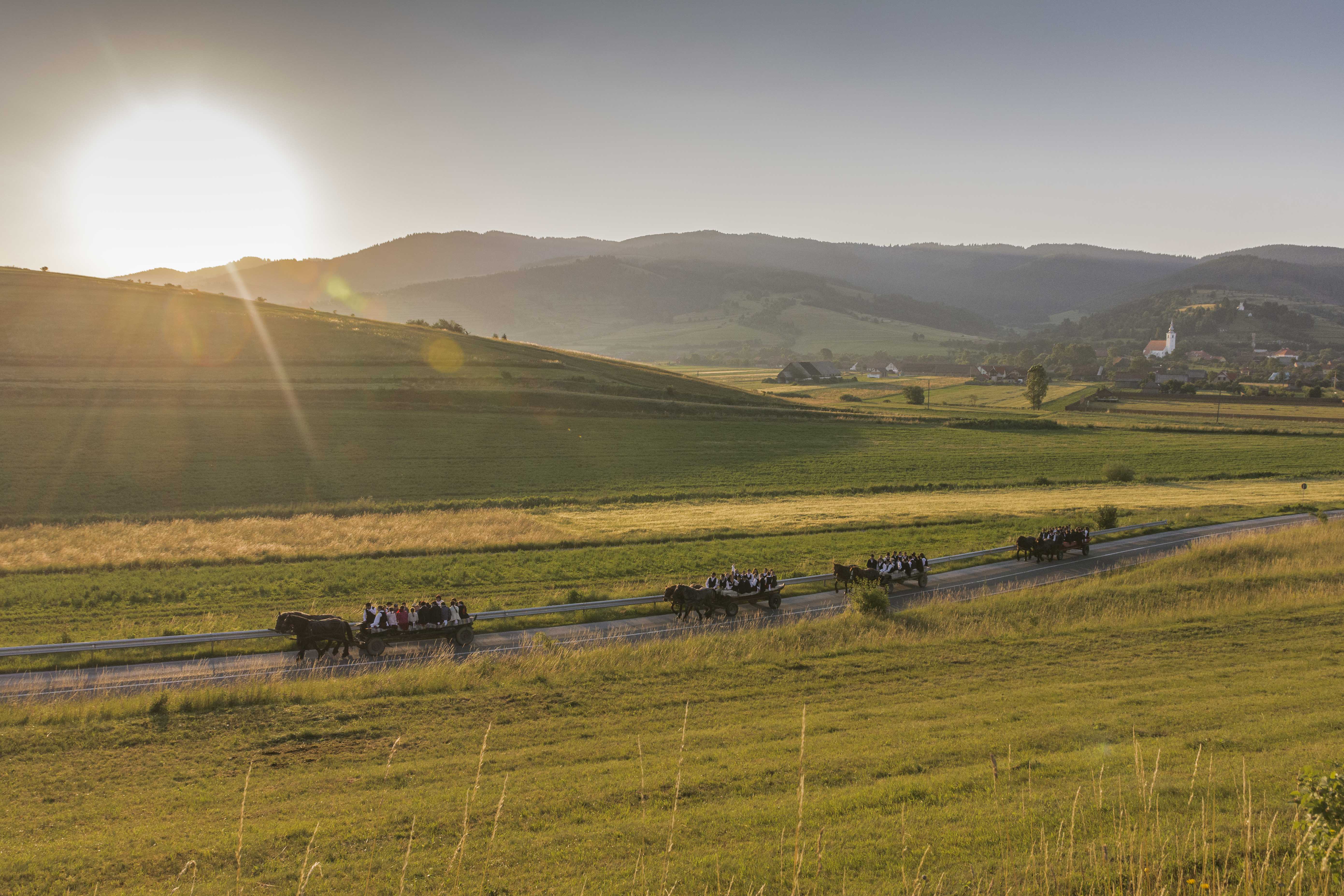 Saturday at dawn a group of youngsters dressed in traditional Székely folk costumes left from Pottyond/Potiond on farm wagons and horseback to start their 25 km long journey to the Day of the Thousand Székely Girls event in Csíkszereda/Miercurea Ciuc. We followed the caravan to show you their journey in pictures and also talked with the leader of the group, Lajos Magyar about the importance of traditions, and about his motivations.