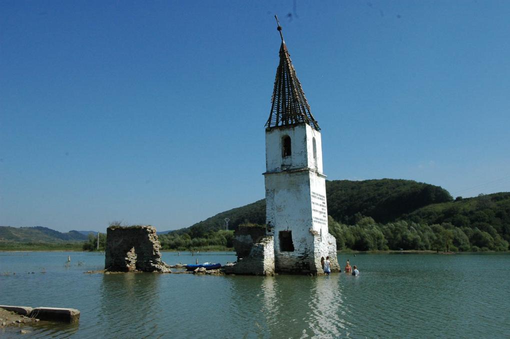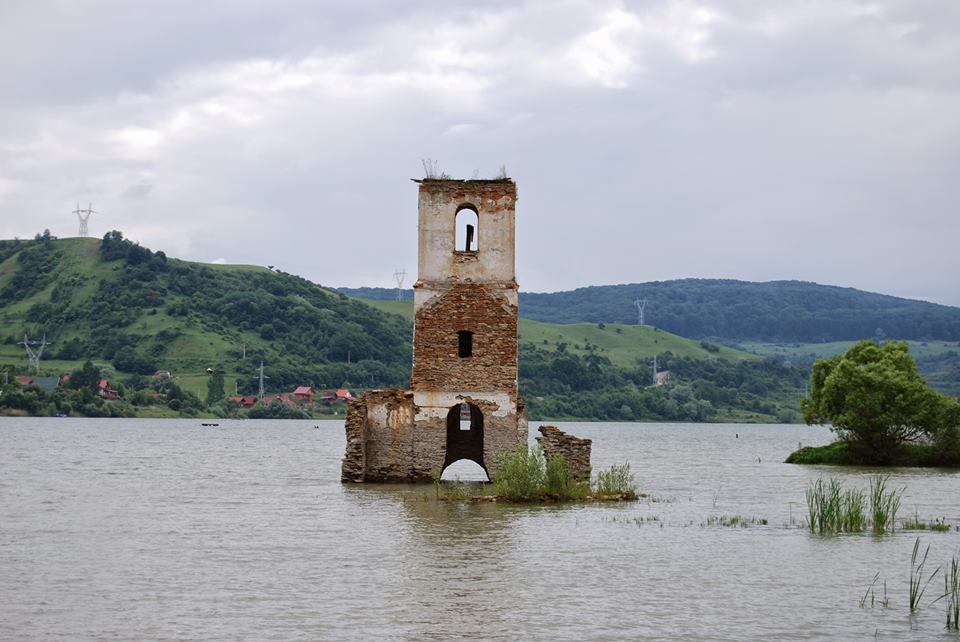 By the time the village started to be flooded slowly – in November 1992 – 126 people were still living in their homes (99 Hungarian, 23 Gypsy and 4 Romanian), but two years later in 1994, when the whole village (180 building) was under water, most of them also moved away. Only a couple of families could stay in those 12 houses which survived the flood by standing on the top of a hill. The tower of the village’s Roman Catholic church – built in the XVIII. century – held on for another two decades in the water but eventually collapsed on June19, 2014. This was the time when ex-inhabitants decided to rebuild the church as a memento.